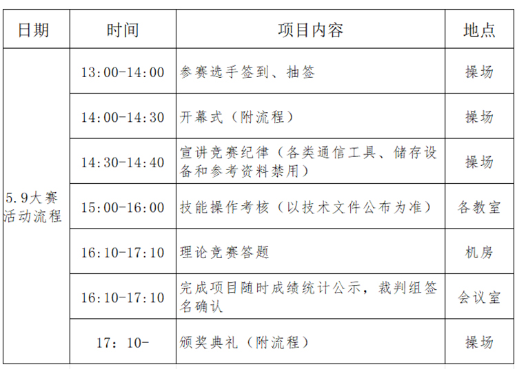 比赛时间及内容