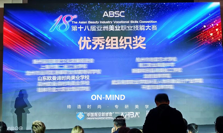 在美业赛事的激烈角逐中,山东欧曼谛时尚美业学校凭借卓越的赛事组织能力与出色的整体表现,一举摘得 “最佳组织单位奖”。
