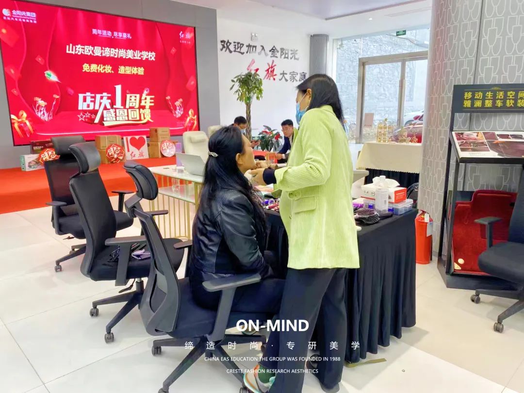 11月19日,山东欧曼谛时尚美业学校师生受邀参加红旗集团在山东大厦举行的“周年庆高端客户答谢会”活动。本次活动山东欧曼谛时尚美业学校师生为50对高端客户做化妆、造型体验,并得到客户和厂商的高度好评。