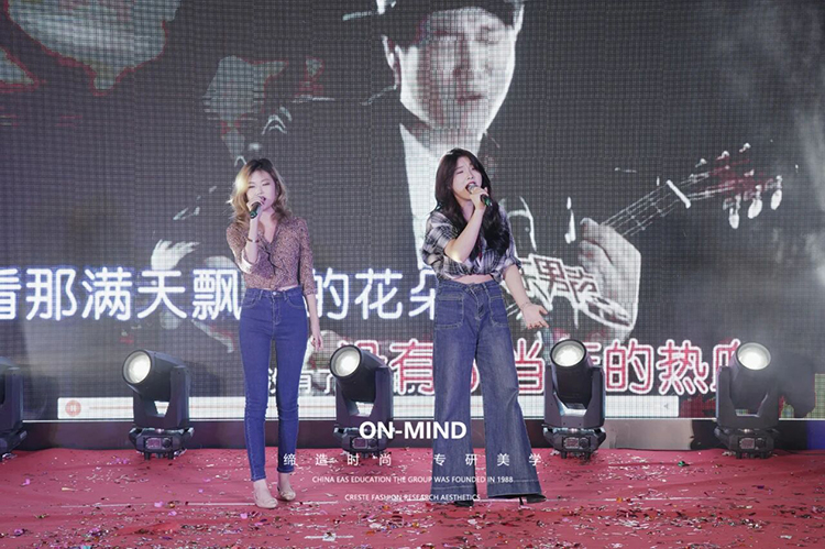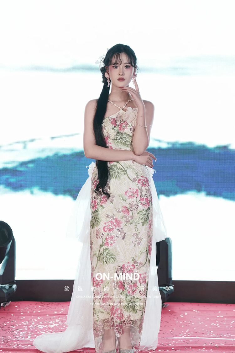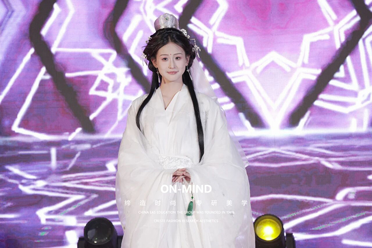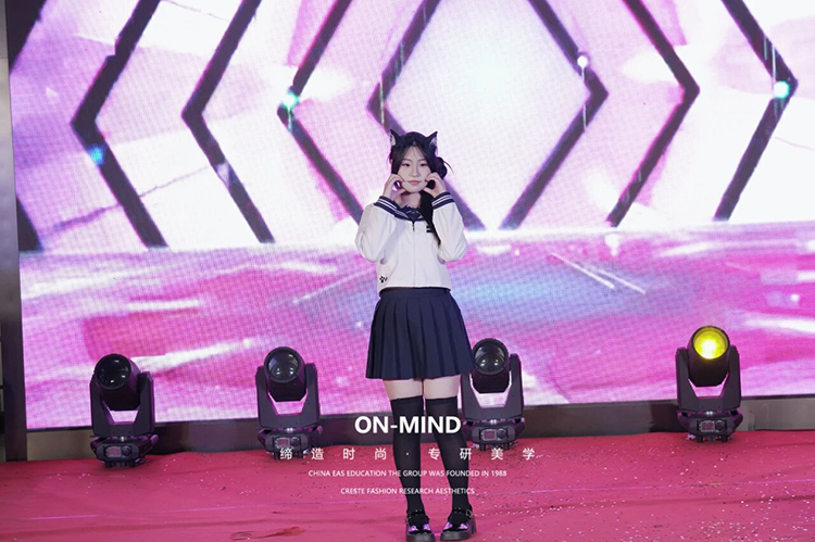 第一轮走秀当动感旋律响起,第一轮走秀学子们自信登台,每一步都与音乐完美契合。学校的美妆教学成果丰硕,学子们将所学灵活运用:为 JK 造型打造元气满满的青春妆容,为新中式设计雅致古典的妆面,为 cos 角色塑造灵动鲜活的造型,用精致妆造与从容台步,展现出教学成果的扎实与亮眼。